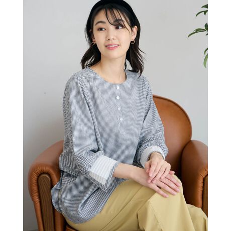 クルーネックチェックブラウス