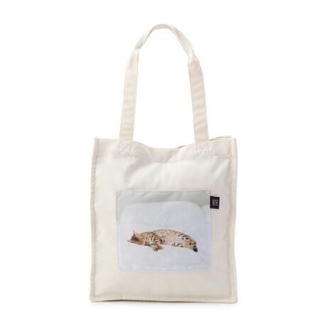 可愛い猫のフォトデザインが施されたトートバッグです。