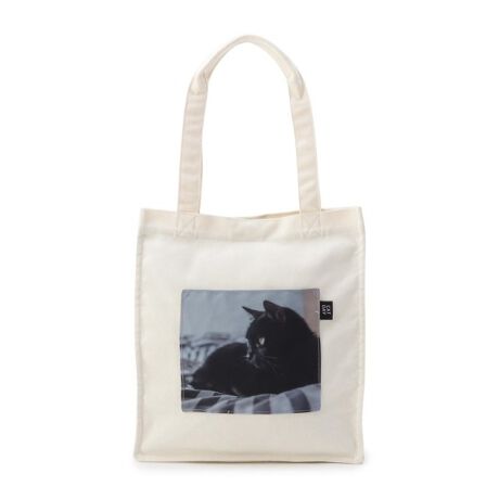 可愛い猫のフォトデザインが施されたトートバッグです。