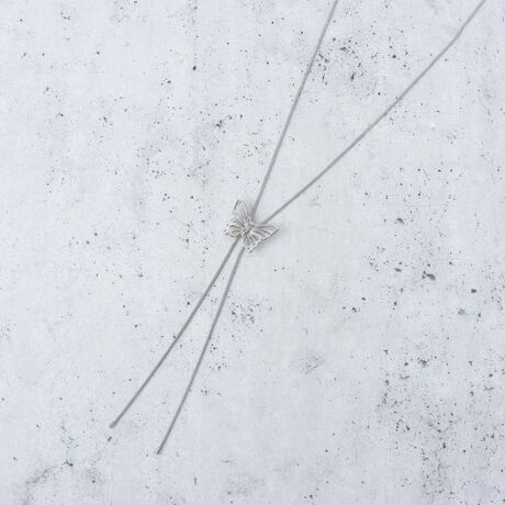 モチーフがアクセントになり、長さ調整が楽で使いやすいラリエットネックレス。