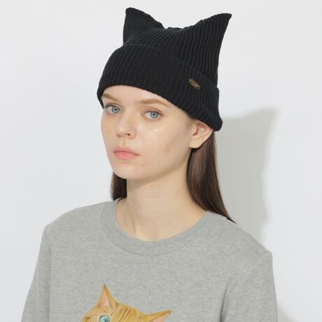 [型番:55534533__]◆コーディネートのアクセントになるニット帽ネコ耳の形をしたトレンド感のあるニット帽です。かぶるだけでシンプルなコーディネートのアクセントになるアイテムです。キラリと光るゴールドチャームがポイントです。