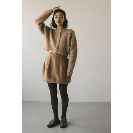 [型番:500HAS31-3031]モデル身長166cm(Mサイズ着用)ふんわりコクーンシルエットが映えるマットシャギーミニスカート。カットソーポンチ素材のインナーショートパンツ付きで暖かく着用頂けます。ボリュームのあるシルエットで美脚見せが叶う一枚です。透け感なし、ストレッチインナーショートパンツあり。【お手入れ方法】ドライクリーニング ※アイロン不可