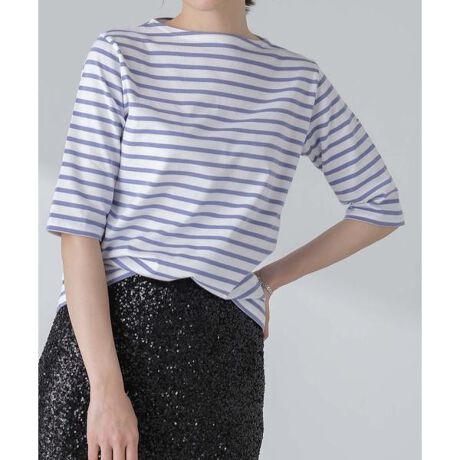 フレンチマリンの代表的なブランド「オーシバル」のボーダーTシャツ。女性らしさが叶うスッキリとしたシルエットに、左袖にはロゴマーク、左裾にはアイコンの蜜蜂マークがアクセントを効かせるデザイン。柔らかい天竺素材で裾をタックインしやすく、インナーにも使いやすいので着こなしの幅が広がりそう。