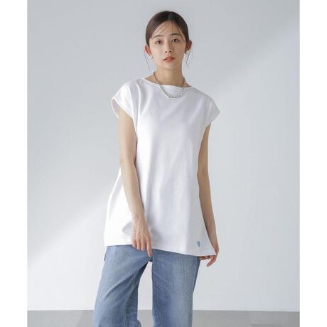 ORCIVAL定番のCOTTON LOURD生地を使用したチュニック丈プルオーバー。大きく開いた両サイドのロングスリットが特徴で、半袖のように肩に掛かるデザイン。ゆったりとした身幅に、ヒップまである丈感が、体型を美しくカバーしてくれます。すっきりとしたボートネックに、ミツバチワッペンがワンポイント。大人のキレイめカジュアルスタイルに重宝する一枚です。