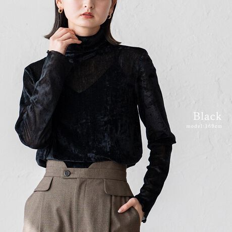 インナーが見えすぎない絶妙な透け感で、1枚でも使いやすいアイテムです。