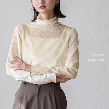 ベロアハイネックシアートップス【aroco/アロコ】