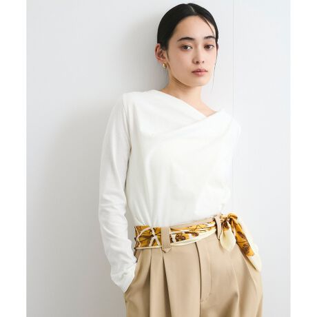 一枚でも華やかに胸元のドレープデザインがレディなカットソー。