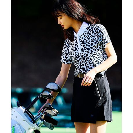 モノトーンのカラーリングで、シンプルでスタイリッシュなアニマル柄の半袖ポロ。