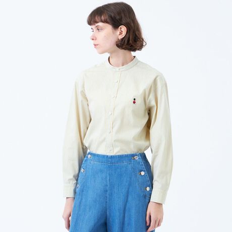 バッキンガムベアの刺しゅうが入った定番のバンドカラーシャツ。