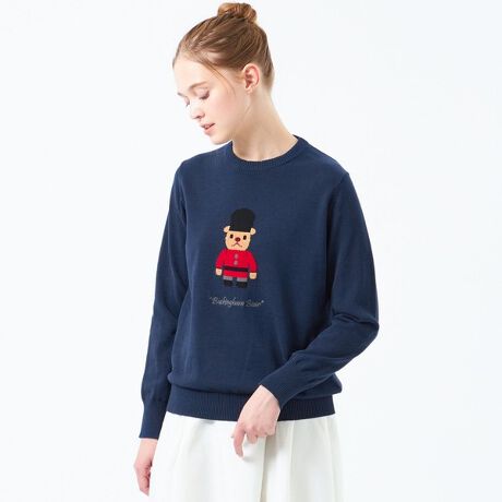ジャカード編みで表現された大きなバッキンガムベアがポイントのニットプルオーバー。