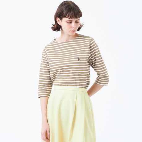 アイコニックなバッキンガムベアがポイントの七分袖バスクボーダーTシャツ。