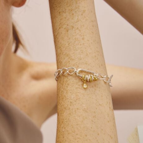 コイルモチーフにキュービックジルコニアのビジューが一粒垂れるように付いたブレスレット。