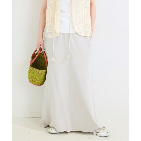 比較的薄手のスウェット生地のウエストからゆとりのあるAラインシルエットです。