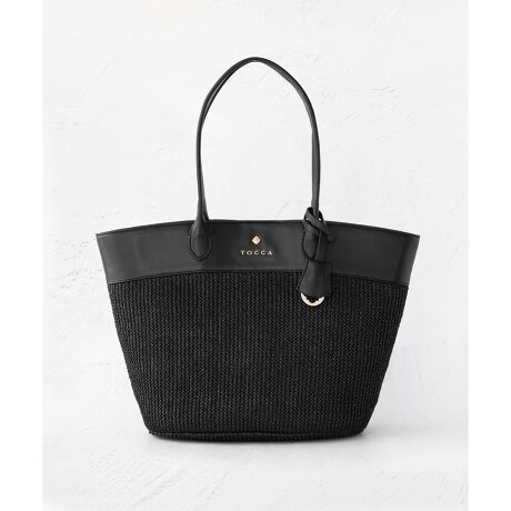 ブラック・ホワイトの合皮カラーがボディーのかご素材と美しいコントラストを成し、夜明けの波間を思わせるデザイン。