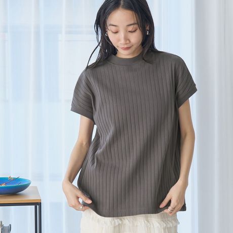 ボトルネックデザインで、着こなしをきちんと感も出してくれるTシャツ。