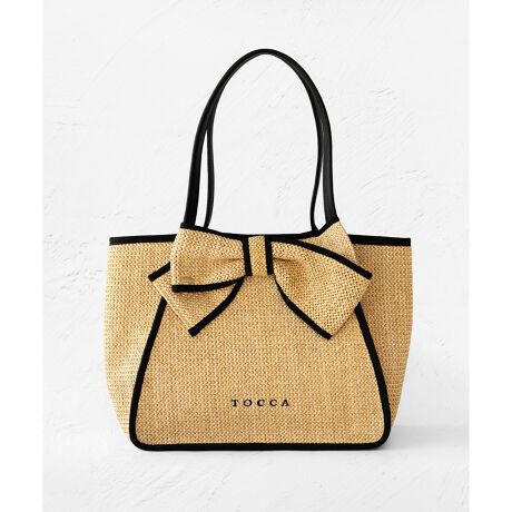 大人っぽいアシンメトリーのリボンをあしらったかごタイプのバッグ。