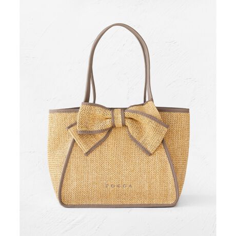 大人っぽいアシンメトリーのリボンをあしらったかごタイプのバッグ。
