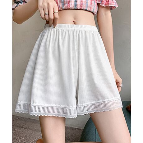裾に施されたレースデザインが可愛らしさを引き立て、見た目も華やかでおしゃれなペチパンツです。
