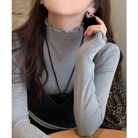 襟や袖のメロウフリルが、レイヤードコーデのアクセントにぴったり