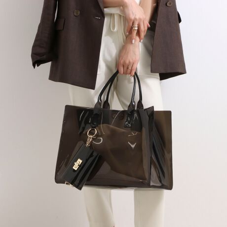 ・PVCのスケルトン素材が、大きめサイズのバッグに軽さをプラスしてくれます。