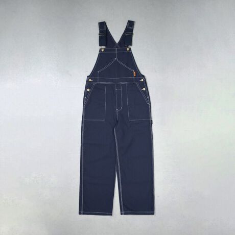 タフな素材とコントラストステッチが特徴のサロペットオーバーオール。