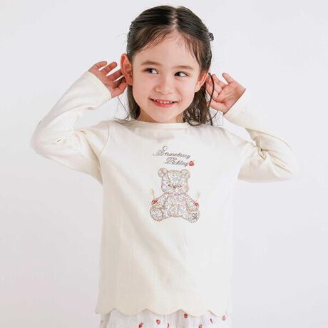 裾のスカラップが可愛い長袖Tシャツ。