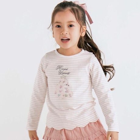 裾のスカラップが可愛い長袖Tシャツ。