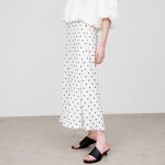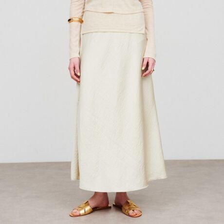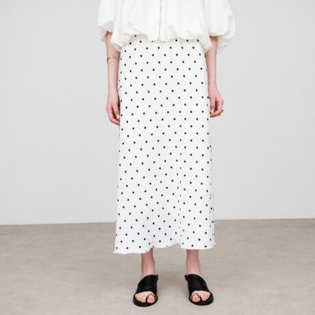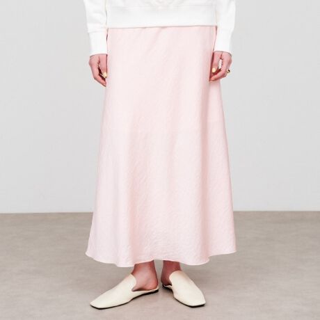 ・シンプルなフレアシルエットが美しく、軽やかさをプラスしてくれるサテンスカート。