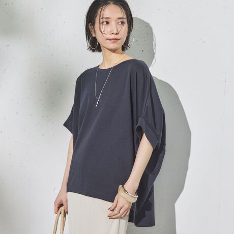 柔らかくサラッとした生地でオーバーサイズなので、肌につかず涼しく着用できます!暑い日にうれしい機能性もあるので、とても重宝します。