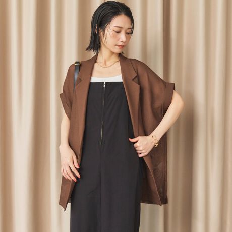 【即完売アイテム/体型カバー】メッシュフレンチスリーブジャケット