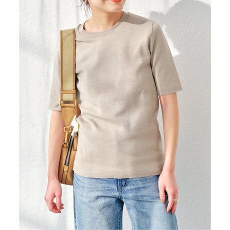 カジュアルで品の良いニットスムース素材を使用して、コンパクトシルエットのTシャツ。