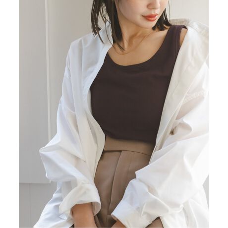 レーヨンベースのしっとりと滑らかなリブ素材で仕立てた、肌馴染みの良い快適な着心地を約束してくれるタンクトップ。