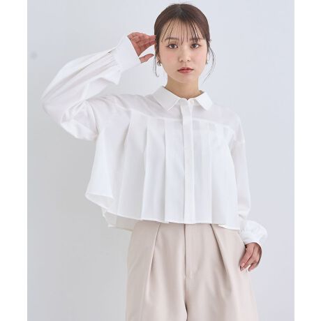 前後のタックプリーツが華やかな印象の長袖シャツ。ワイドな身幅に短めの丈感がスタイルアップを叶えてくれるのも嬉しいポイントです。凹凸感のある肌離れの良いライトな着用感も魅力的。シンプルな単色でコーディネートに取り入れやすく、これからのシーズンスタイルに活躍してくれるおすすめアイテムです。透け感[ややあり]