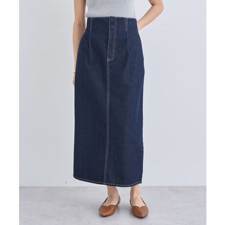様々なスタイリングに活躍してくれるデニムスカート。脚長効果にも期待のロング丈で細見えのナローシルエットがこなれ感あるデザインです。ハイウエストカットで切り替えをプラスし、よりスタイルアップを後押し。ウエストはバックゴム仕様でフィット感もよく、足さばきしやすいスリット入りも嬉しいポイントです。シンプルなTシャツ合わせでもおしゃれに決まるマストアイテム。