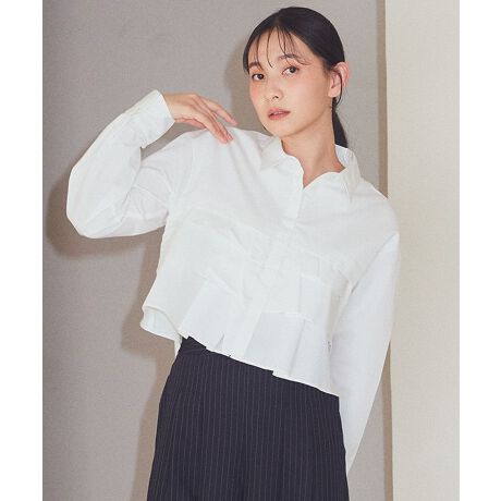 フロントのティアードデザインが目を惹くシャツ。シンプルなベーシックカラーに比翼仕立てで甘さを抑えたきれいめな1着です。トレンドのショート丈は、ハイウエストボトムと相性抜群。ベーシックなオフホワイトと爽やかなストライプ柄を加えた3色展開で、デイリーからオフィスカジュアルまで楽しんでいただけるおすすめのアイテムです。