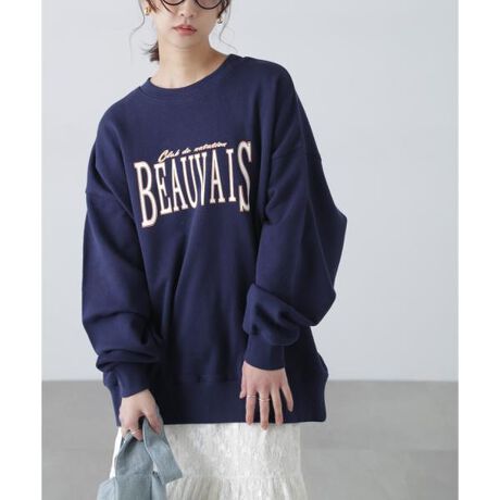 サークルロゴ刺しゅうとカレッジロゴプリントがアソートになったビッグスウェット。綿100%の肌触りの良い裏毛を使用しています。メンズも着られるビッグサイズで、ルーズなシルエットを演出。かなりルーズなシルエットなので、ナロースカートやミニボトムと好バランスで着こなせます。※サークルロゴの意味「White Sands Park 」ホワイトサンズ国定公園「Alamogordo 25km Southwest 4000Feet elevation Tularosa Vally」アメリカ合衆国オテロ群にあるアラモゴードの南西およそ25km、標高1200m(4000ft)に位置する白い大砂丘地帯。※カレッジロゴの意味「Club de natation BEAUVAIS」ボーヴェ(フランス)スイミングクラブ※モデルの着用画像の場合、光の当たり具合により、実際の色味と異なって見えることがございます。色味は、商品単体の画像をご参照ください。