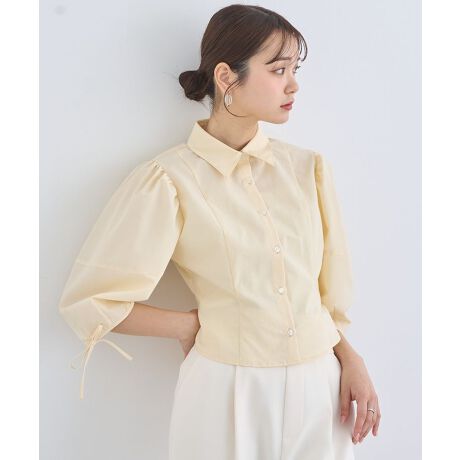 <b>【超十代-ULTRA TEENS FES-2025 板倉可奈さん(CUTIE STREET)着用アイテム】</b>肩にボリュームを持たせたショルダーがポイントのデザインシャツ。シンプルなシャツながらもリボンやギャザーなどフェミニンなディテールを加えたこだわりの1着です。ほんのりとくびれたペプラムシルエットでスタイルアップ効果も。爽やかなカラーバリエーションを揃えた春のコーディネートにぴったりのアイテムです。