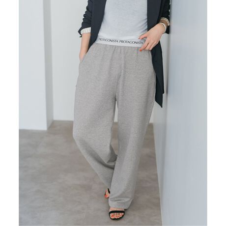 ウエストゴムに「PROTAGONISTA」のブランドロゴを配したワイドストレートパンツ。