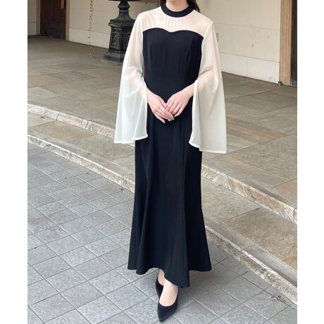 チュールスリットスリーブドッキングワンピース