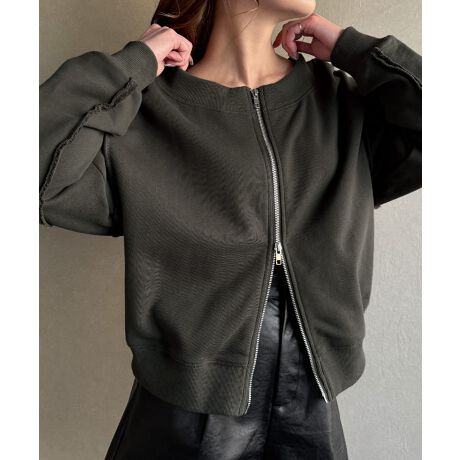 ワイドネックWジップデザインラインスウェット