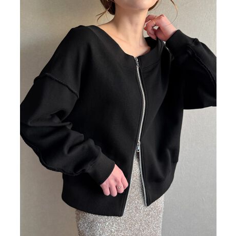 ワイドネックWジップデザインラインスウェット
