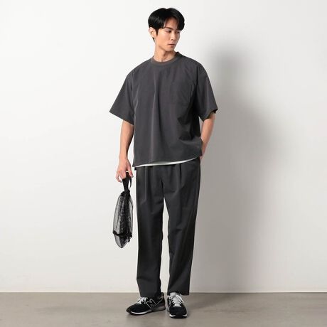 Tシャツはゆとりのあるサイズ感に胸ポケット、裾のスリットをアクセントにしています。