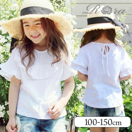 キッズ Tシャツ 半袖 女の子 通販 カットソー 10003371 半袖Tシャツ 夏服 フリル バックリボン 白 ホワイト ナチュラル 可愛い おしゃれ かわいい オシャレ こども 女子 通園 通学 トップス 子ども服 子供服 キッズファッション