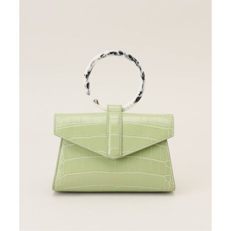 どんな日にも使い勝手の良いミドルサイズで、ヴィーガンレザーの本体とアクリルの持ち手の組み合わせがユニーク。ハンドバッグとしてだけでなく、付属のストラップを用いてショルダーバッグやウエストバッグとしても使えるマルチなモデル。