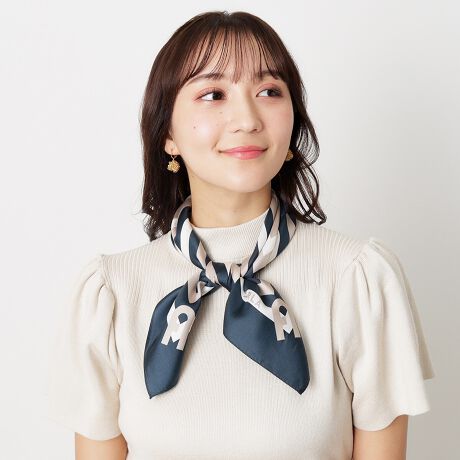 巻き方や結び方で、ブランドロゴが主張される計算されたデザインです。