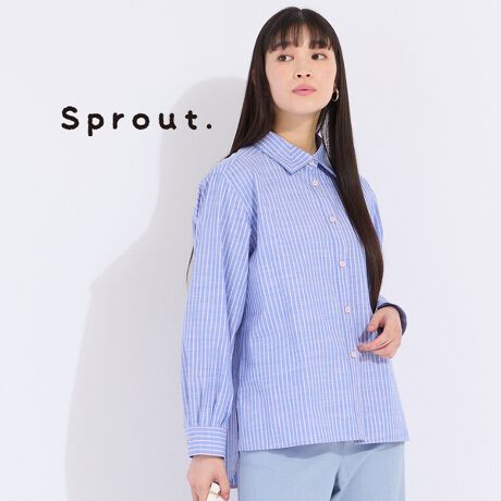 【Sprout.】綿ストライプ ロゴ刺繍入りブラウス