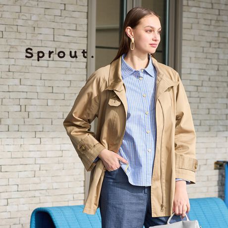 かっちりとクラシカルなトレンチコートと差のつく軽やかなコート。トレンチのディティールや素材をとりいれつつ、スプラウトらしくアレンジ。