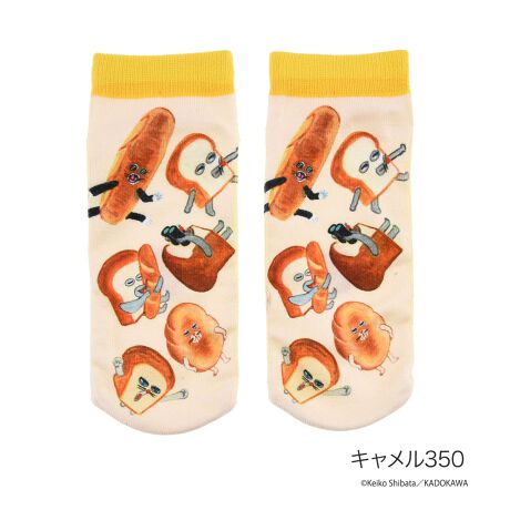 大人気「パンどろぼう」からスニーカー丈ソックスの登場です。パンどろぼう総柄がおもしろかわいいデザインの一足です。