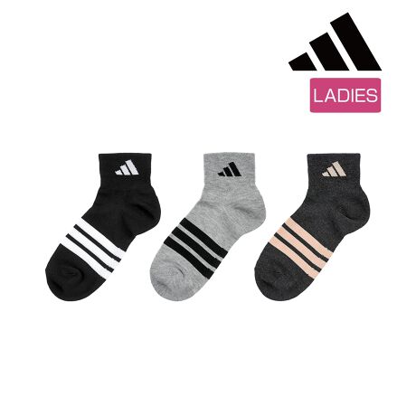 【アディダス : DEO】3足組 靴下 無地 ワイドヒールロゴ ライン ショート丈 つま先かかと補