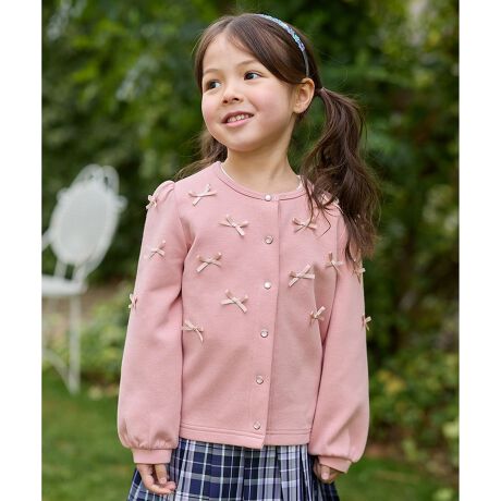 キッズ/長袖/カーディガン/リボン/スナップボタン/通園/通学/おでかけ/人気/デイリー/女の子/ガール/サスティナブル